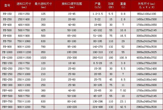 顎式破碎機技術參數